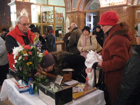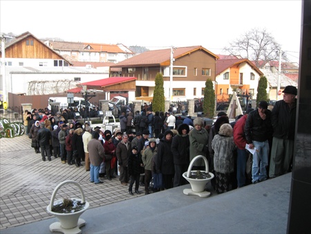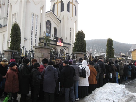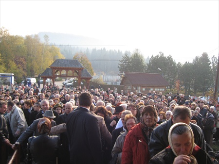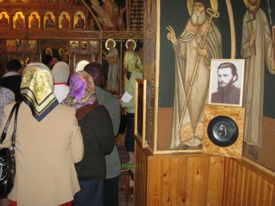 Creştinii veniţi la inchinare la crucea Părintelui ARSENIE BOCA au sărutat cu evlavie icoana - portret.PRISLOP 28.NOI.2009