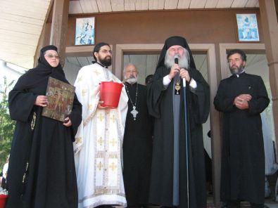 Î.P.S. IOAN al COVASENEI şi Harghitei săvârşind sfânta liturghie in paraclisul de vară al mânăstirii MĂRCUŞ.